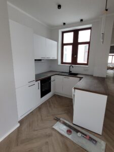 Die Wohnungen verfügen jeweils über eine moderne Einbauküche und einen großen Balkon. Die Einbauküchen sind mit einem Induktionskochfeld mit Backofen, einer Kühl-Gefrierkombination sowie einem Geschirrspüler ausgestattet.