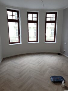 Weiterhin verfügen die Wohnungen über ein Wannenbad und ein Duschbad. Beide Bäder sind stilvoll gefliest und bereits mit Badmöbeln ausgestattet. In den Wohnräumen und im Flur wurde ein hochwertiger Vinylboden in Holzoptik verlegt.
